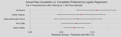 Applying Logistic Regression to Create an Expected Pass Model and Identifying Top Overperformers
